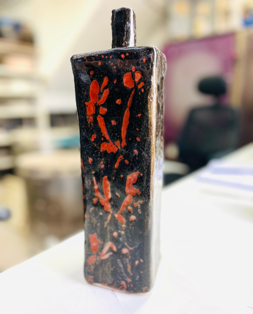 And finally, here I am talking about a recently made pot that I’m very pleased with. It’ll be at the show!
